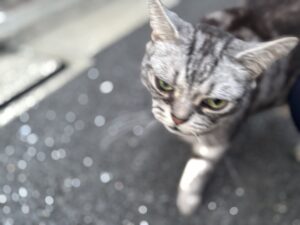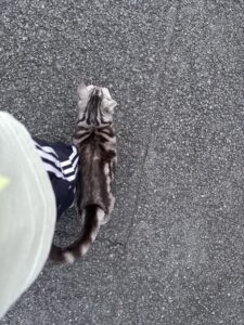 この猫ちゃんが出てきまして、私の足の周りをぐるぐる、体をすりすり。