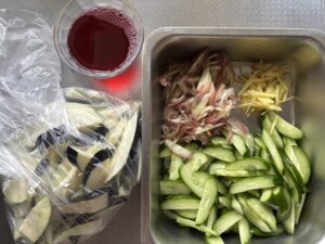 茄子2本、きゅうり2本、みょうが3本、生姜、梅酢100CC