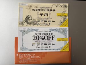 優待 3月9月 優待食事券、および3月のみ飲食代割引カード(5%割引)