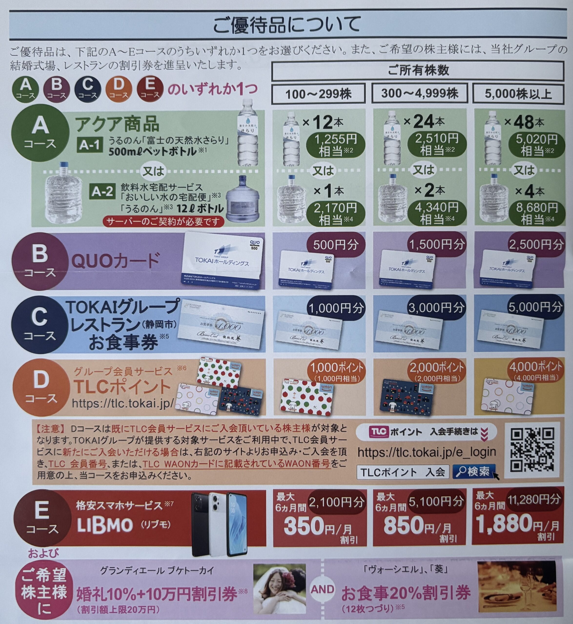 3月権利 TOKAIホールディングス (3167)の優待案内が届いています(6/30到着)