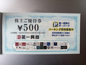 3月権利の第一興商から優待券が届いています(6/24到着)