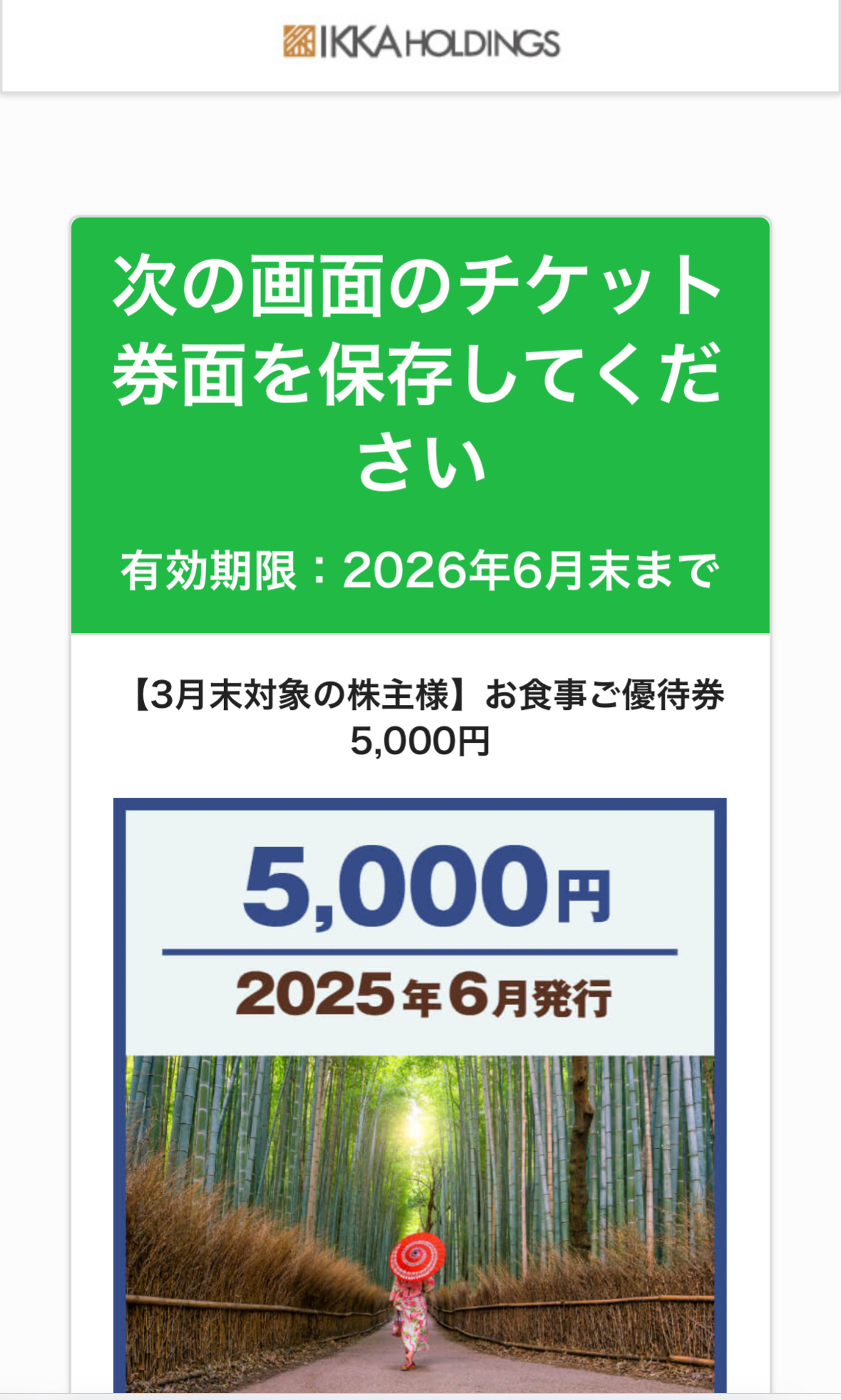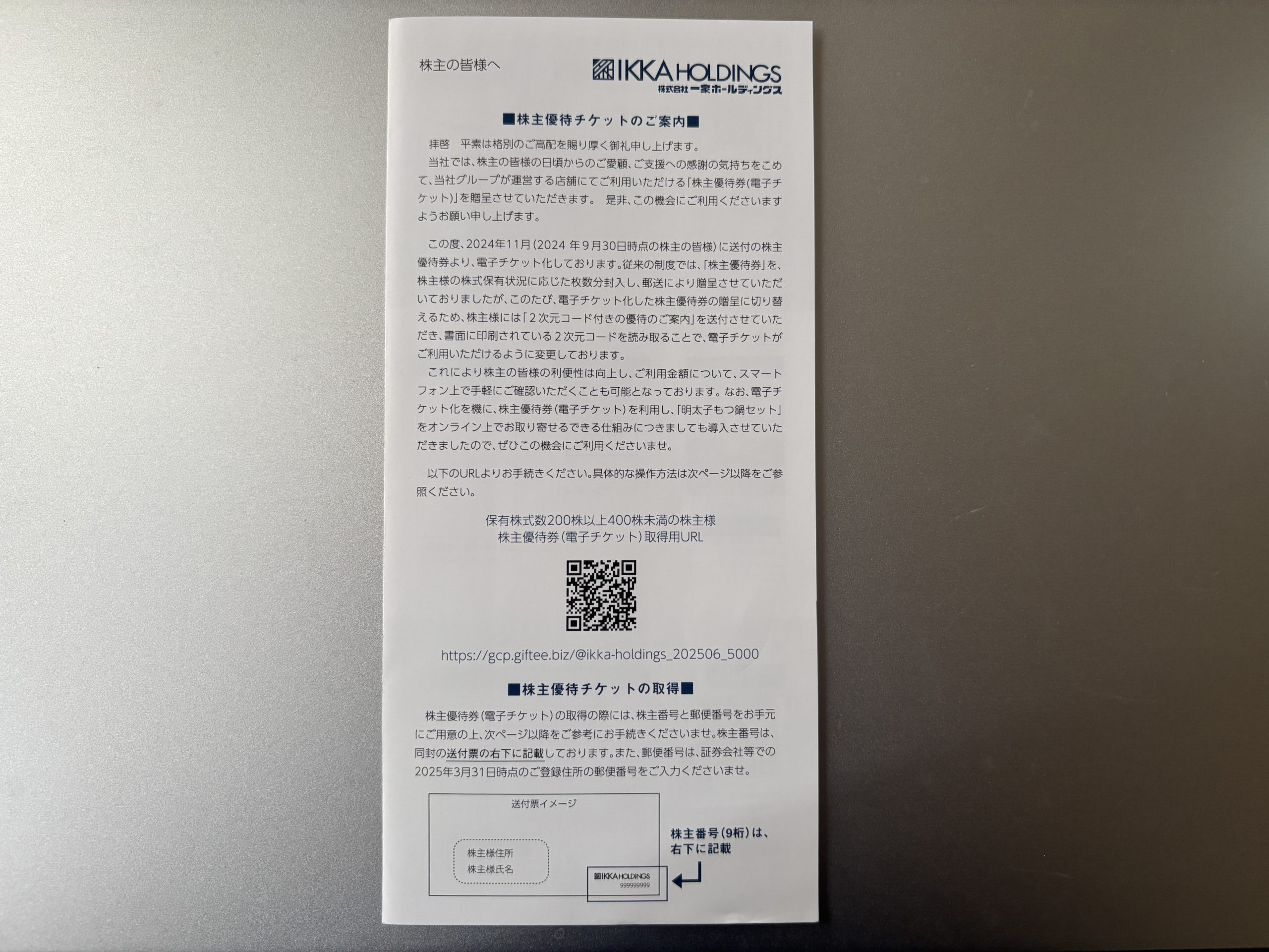 3月権利の一家ホールディングスの優待案内です(6/26到着)