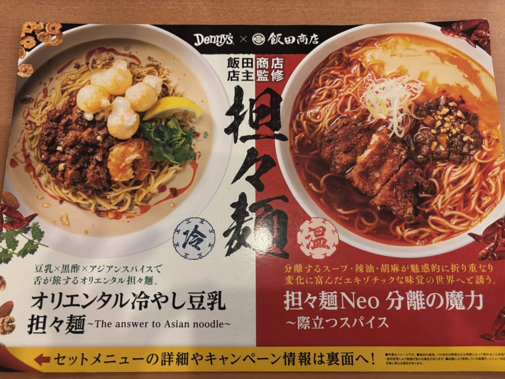 デニーズで、担々麺のキャンペーン開催中ですね。