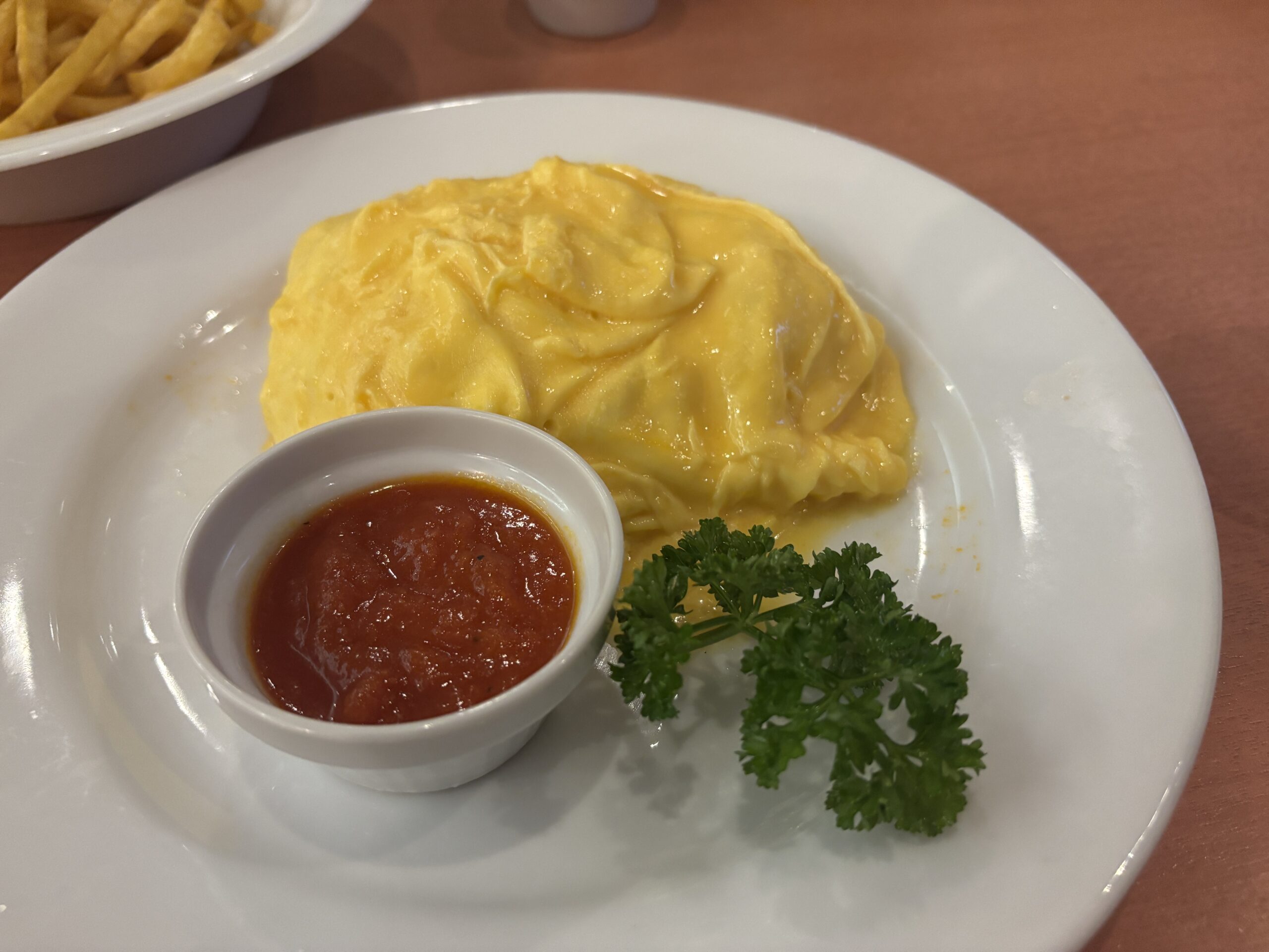 説明には、「どこか懐かしい、ケチャップ味のオムライス」と書いてありますが、ケチャップというよりトマトソース、