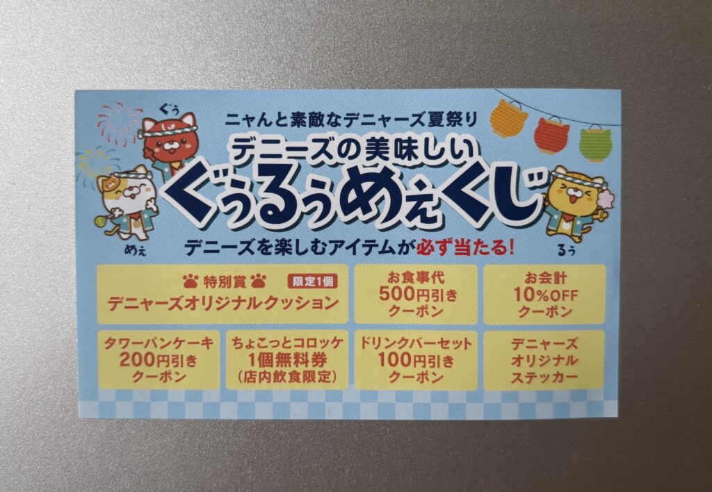 デニーズ、今くじをやったりキャンペーンがあったりするのですね。