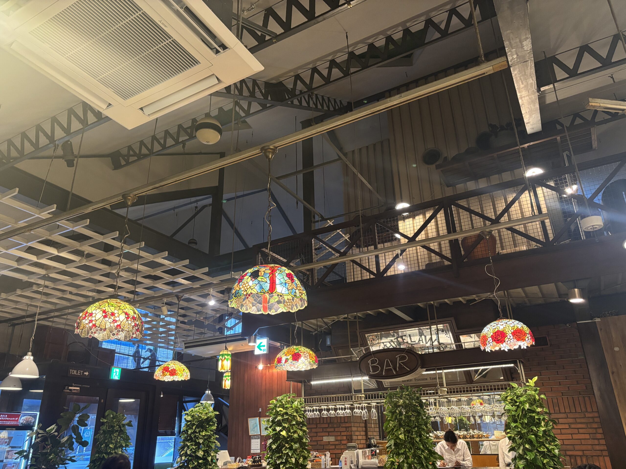 ステンドグラスのランプが吊るされた空間解放感のある、素敵な内装なのも気に入っています。