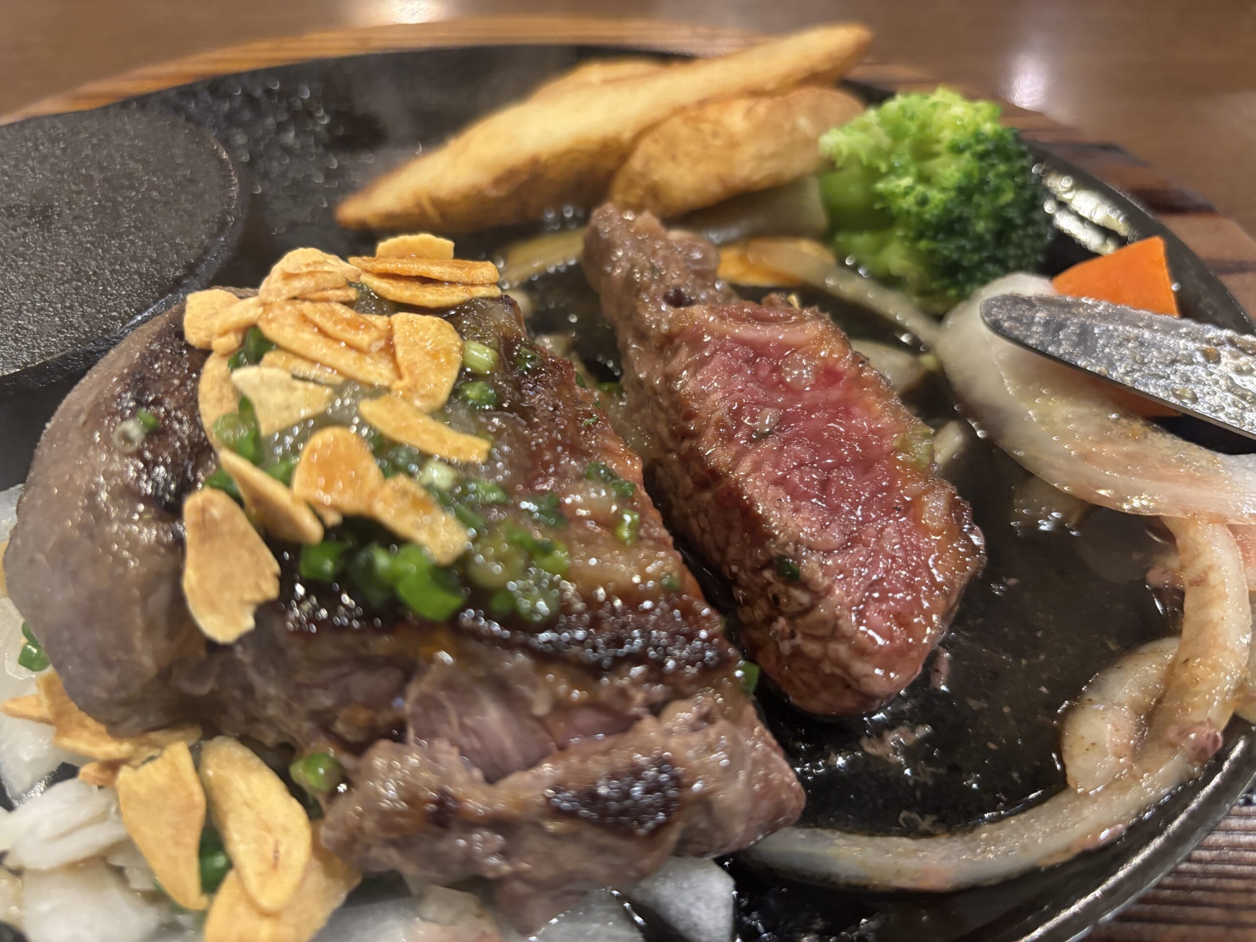 レア寄りでしたので、焼き石で少し焼いてからいただきました。