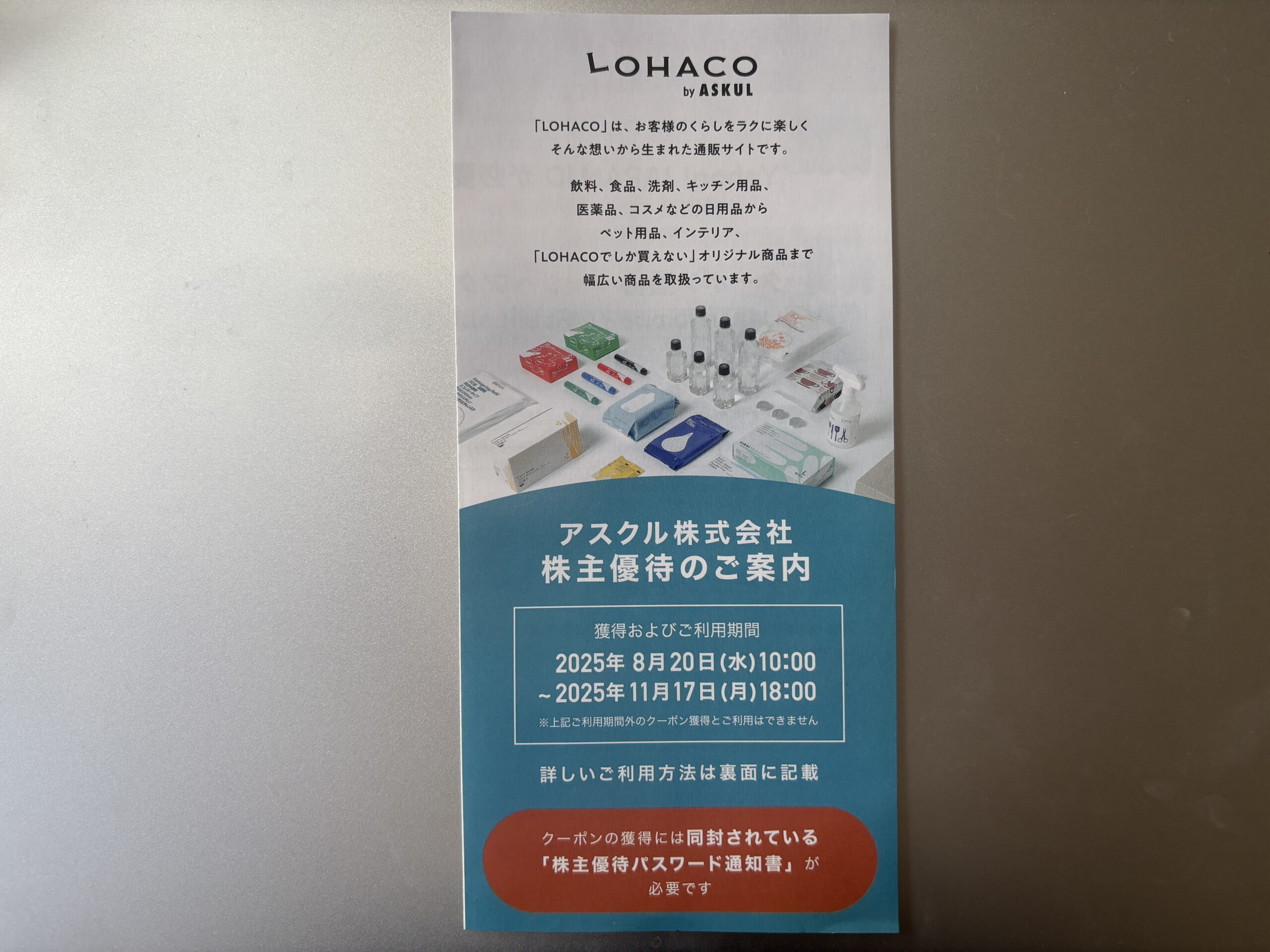 5月20日権利 アスクルの優待案内が届きました(8/8到着)