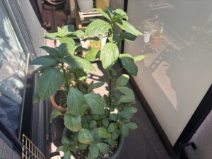 摘心を兼ねて、主軸(一番太い伸びている茎)を15センチくらいカットしました。