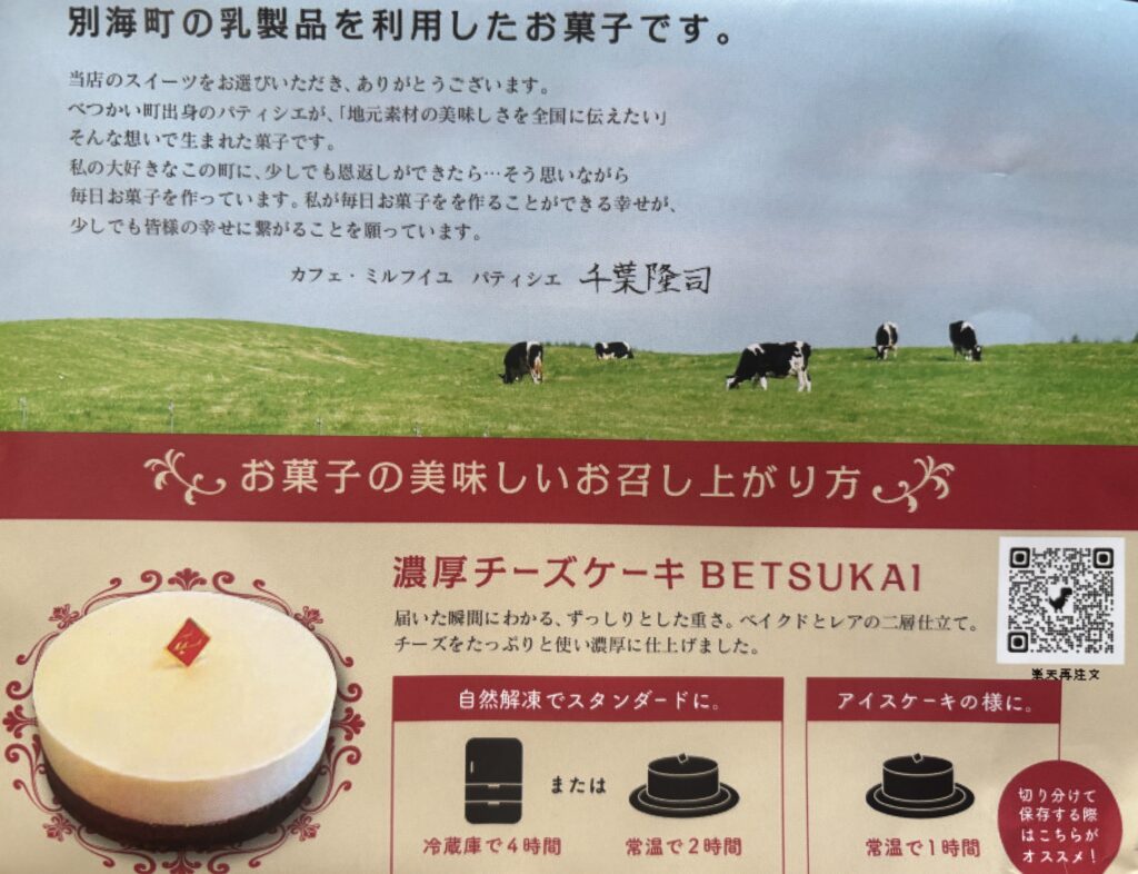 ぴよちゃんの昨年分のふるさと納税で、↓別海町の「濃厚チーズケーキBETSUKAI」をいただきました。