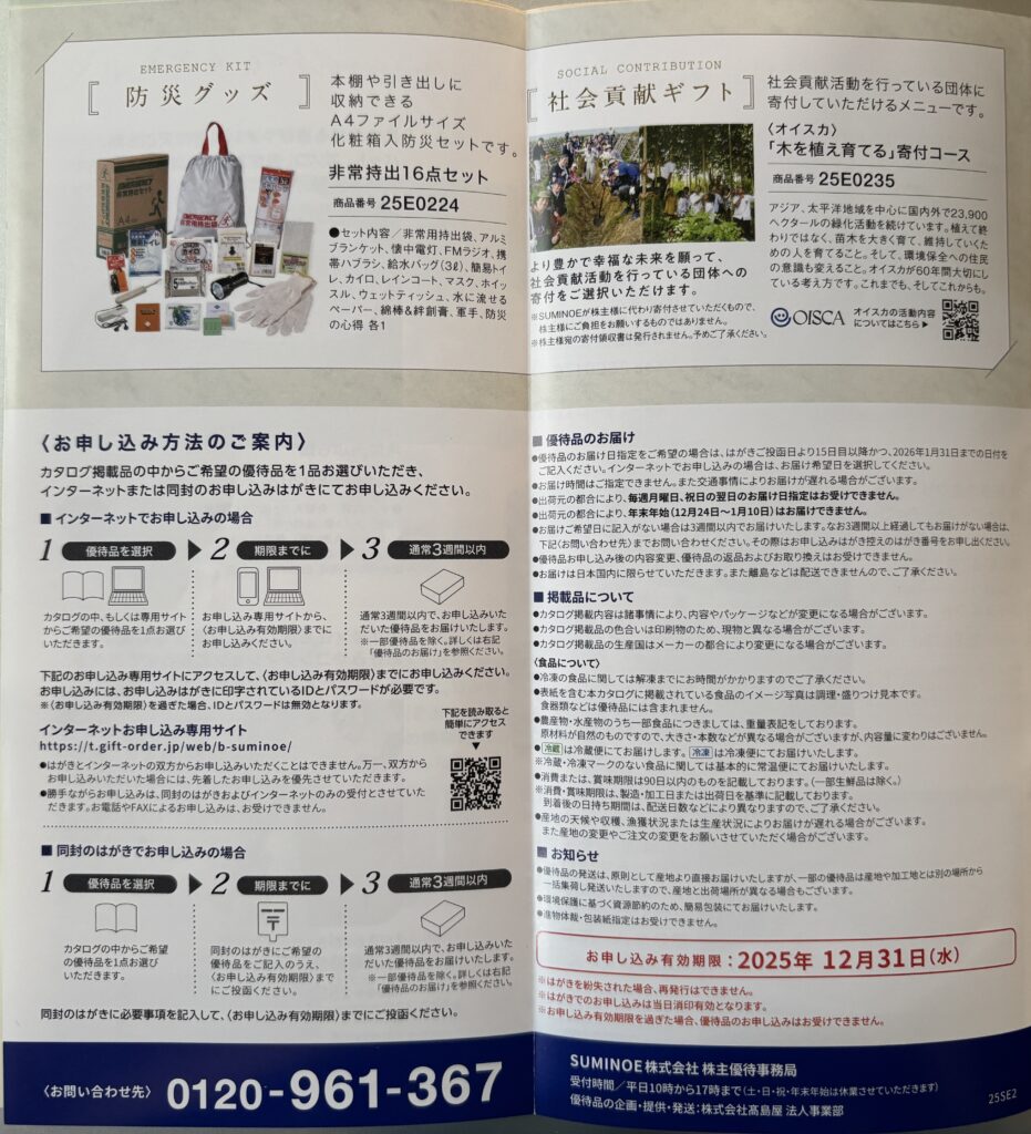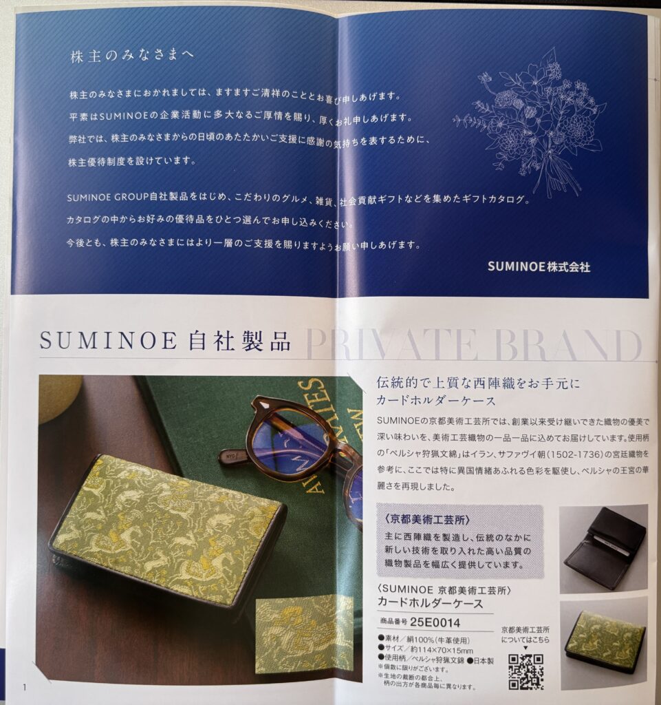 5月権利 SUMINOE(旧:住江織物)の優待カタログが届きました(9/1)