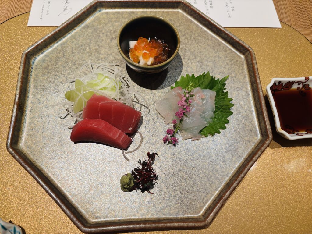 お造りは、まぐろ、ひらめ、いくらと山芋です。
