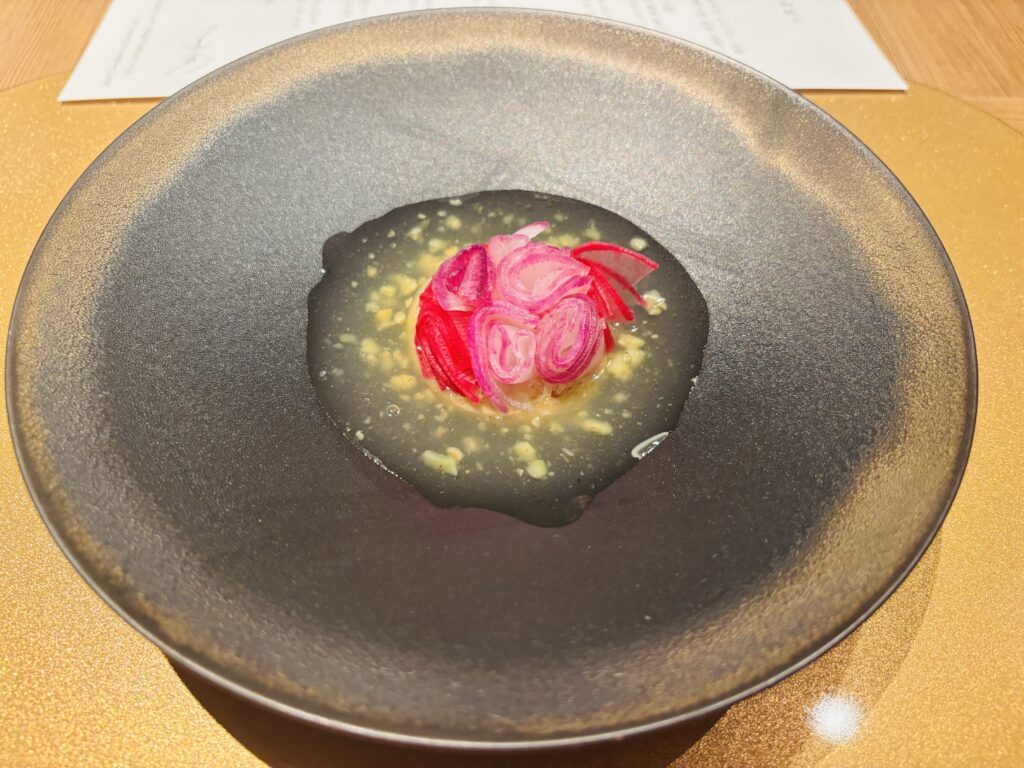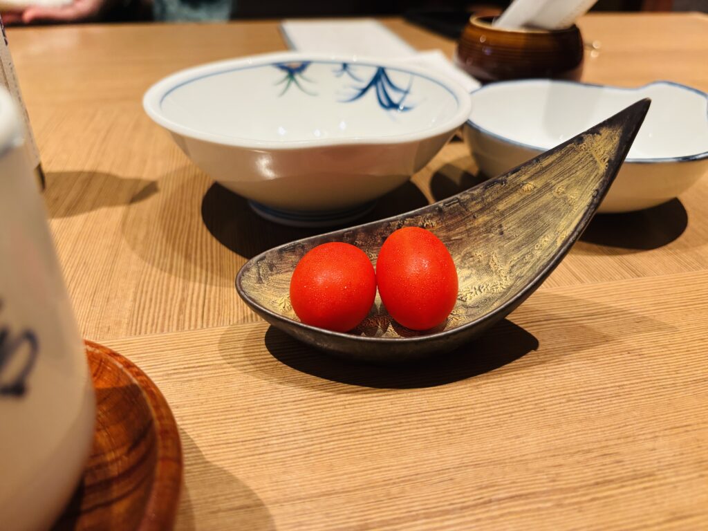 とても甘味の強いトマトで、「こちらを召し上がりながら食事の用意をお待ちください」とのことで、ワクワク感が高まります。