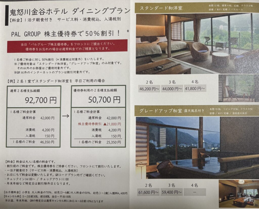 PALグループ優待券は、税抜の宿泊が半額になりますので、