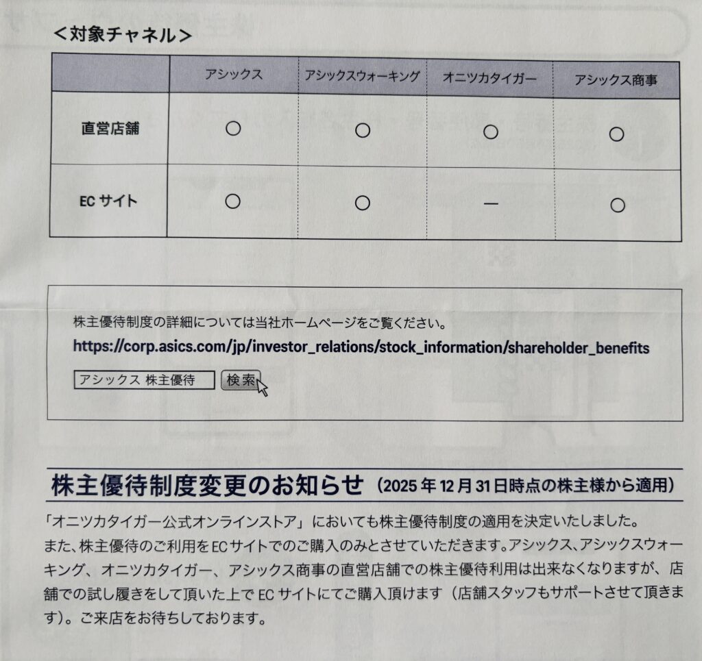 次回の2025年12月権利からは、オニツカタイガーのECサイトでも利用できるようになります。