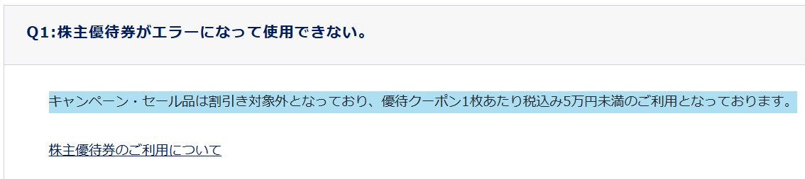 セール品は使えないという文言は、公式サイトの優待の説明に書いていなかったのですが、