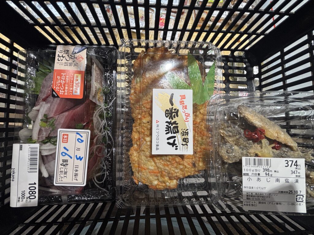 駅の店舗はお寿司などしかありませんでしたが、こちらの店舗はさすが商店街の中にあるだけあってお刺身がとても魅力的です。
