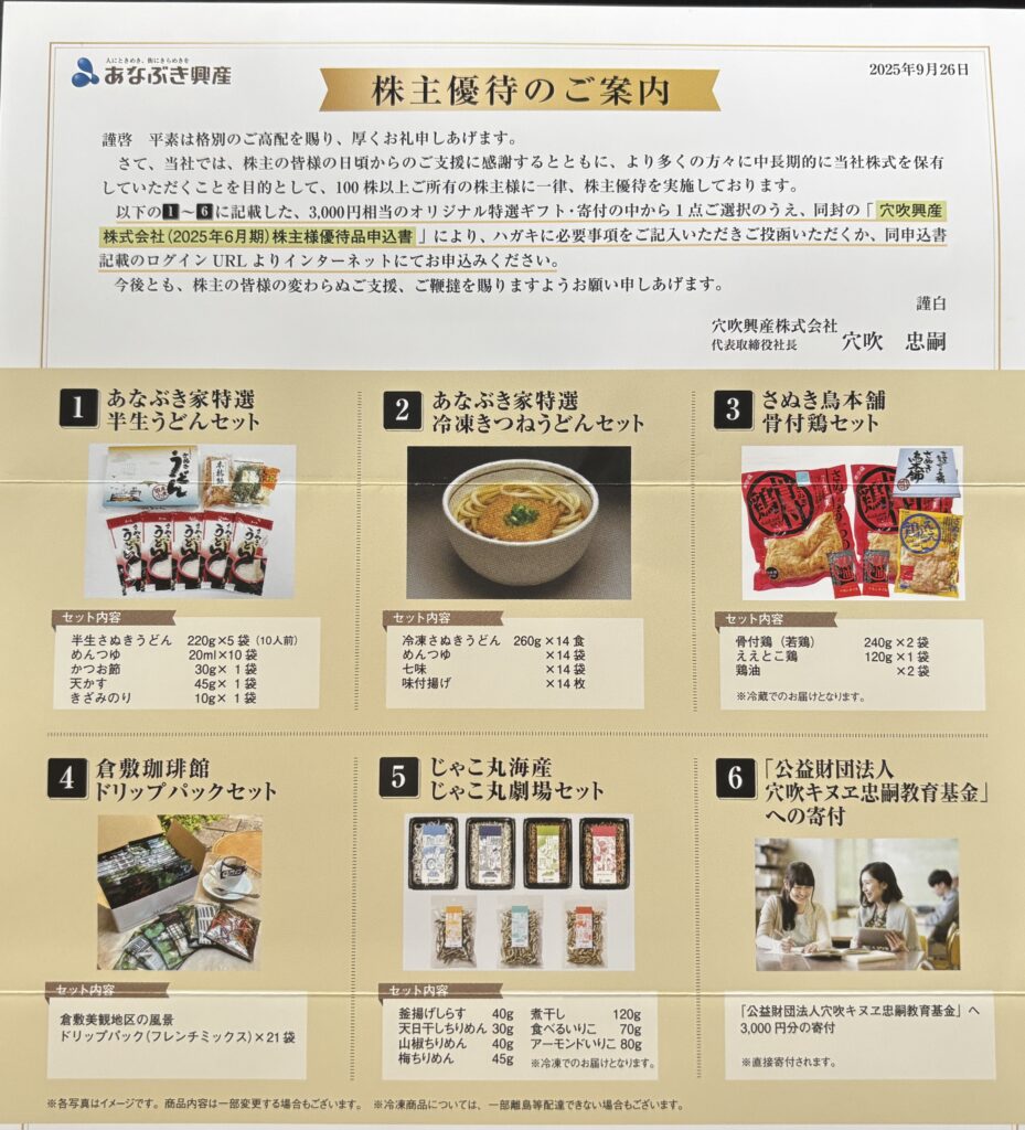 優待 6月権利 100株以上で3,000円相当の選択型ギフト