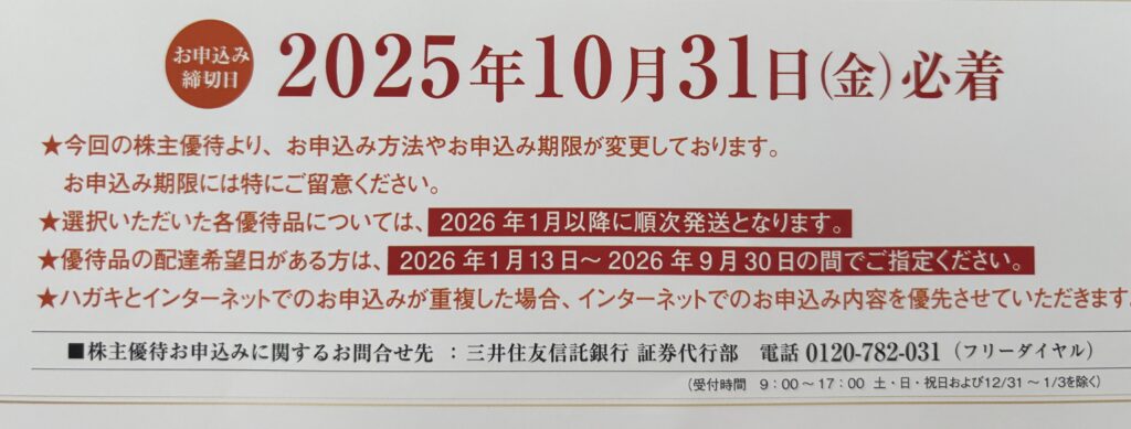 配達希望日(2026年1月13日~2026年9月30日)を記入することができるようになりました。