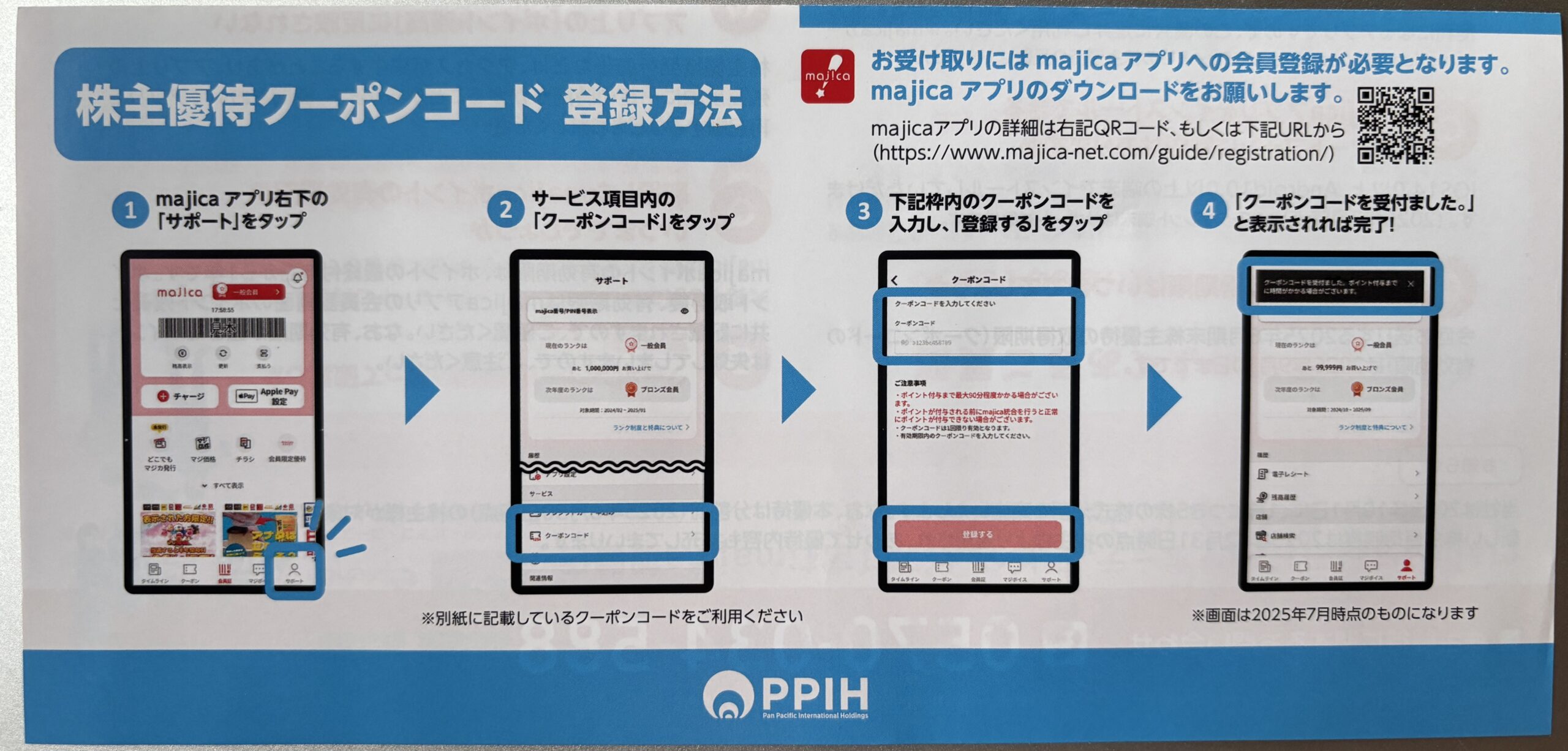 6月権利 パンパシフィック・インターナショナルHDのの優待案内が届きました(9/29到着)