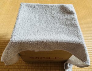 先ほど、ちらっとのぞいたら、タオルにぶら下がって翅を閉じて