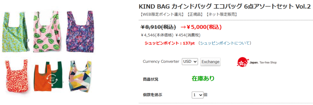 ①エコバッグ 6点アソートセット 5000円ちょうどで、送料もかかりません。