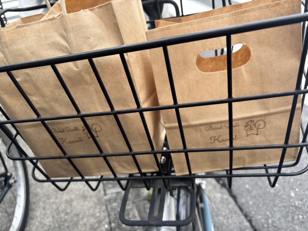 冷蔵品のかぼちゃの米粉ロールケーキは、自転車で運搬は勿体ないので、