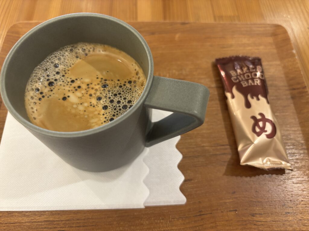 食後にセットのコーヒーをいただきました。チョコバーはサービスなのかな?