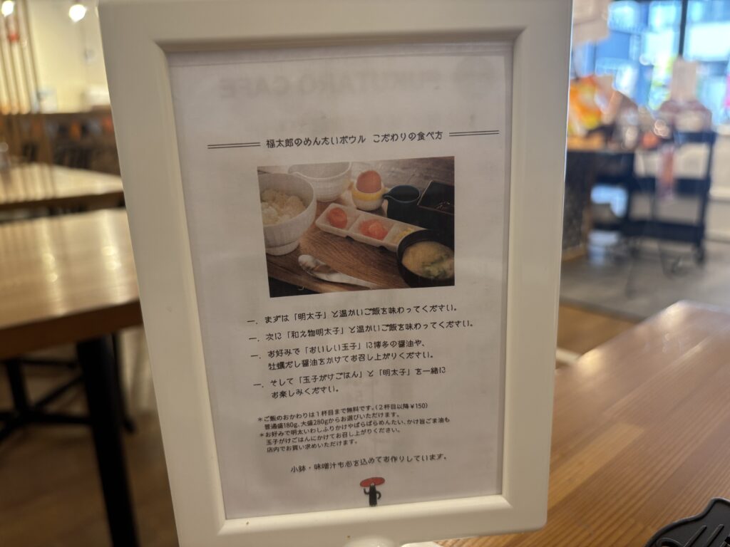 イートインで「めんたいこ」を使ったランチがいただけます。