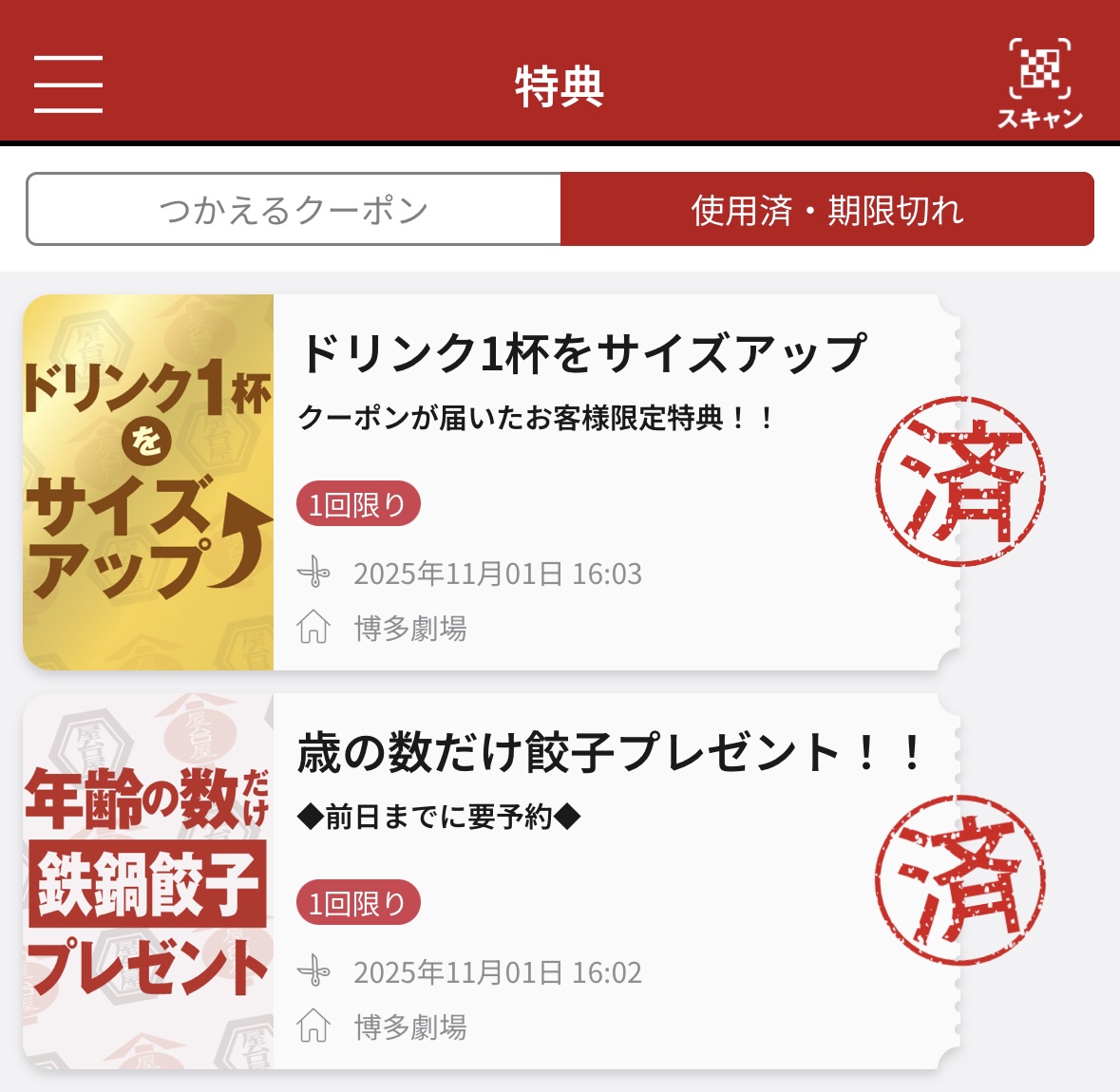 11月に入っても、10月誕生日の餃子クーポンが