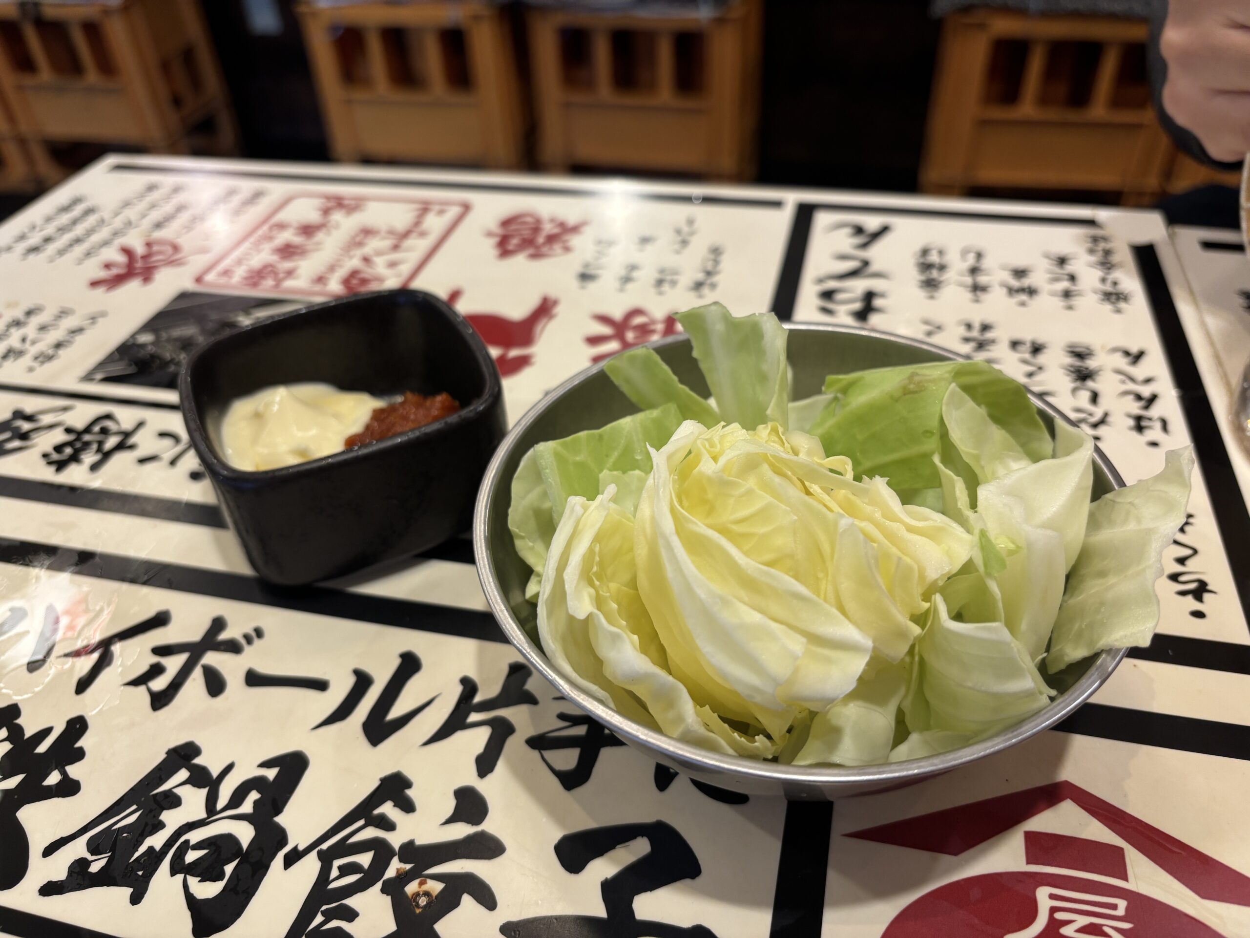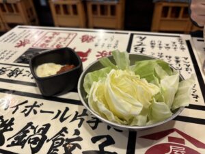 アプリ会員限定特典のお通し一生無料! キャベツお代わり無料です。