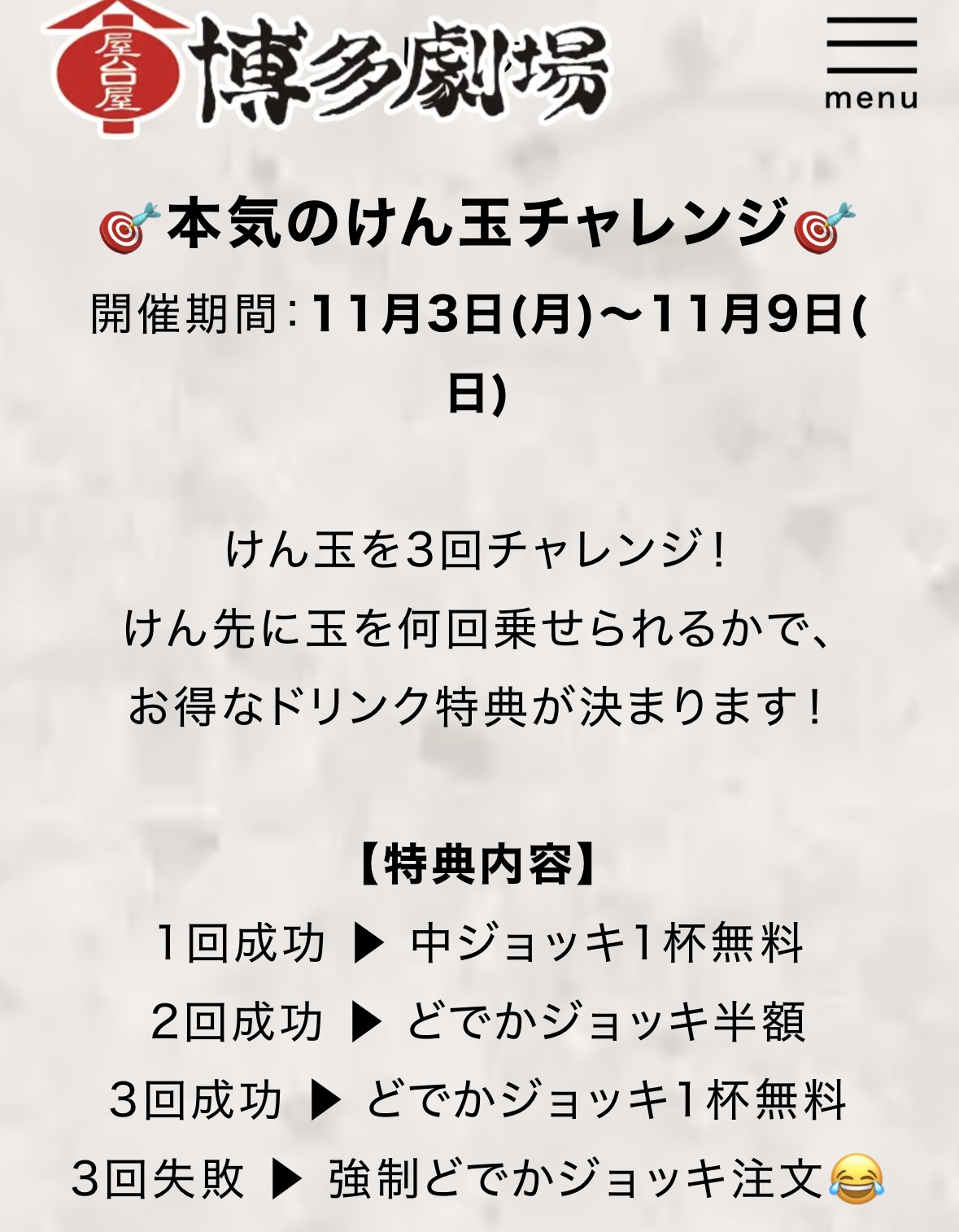 3回成功でどでかジョッキ1杯無料だそうです(*^-^*)