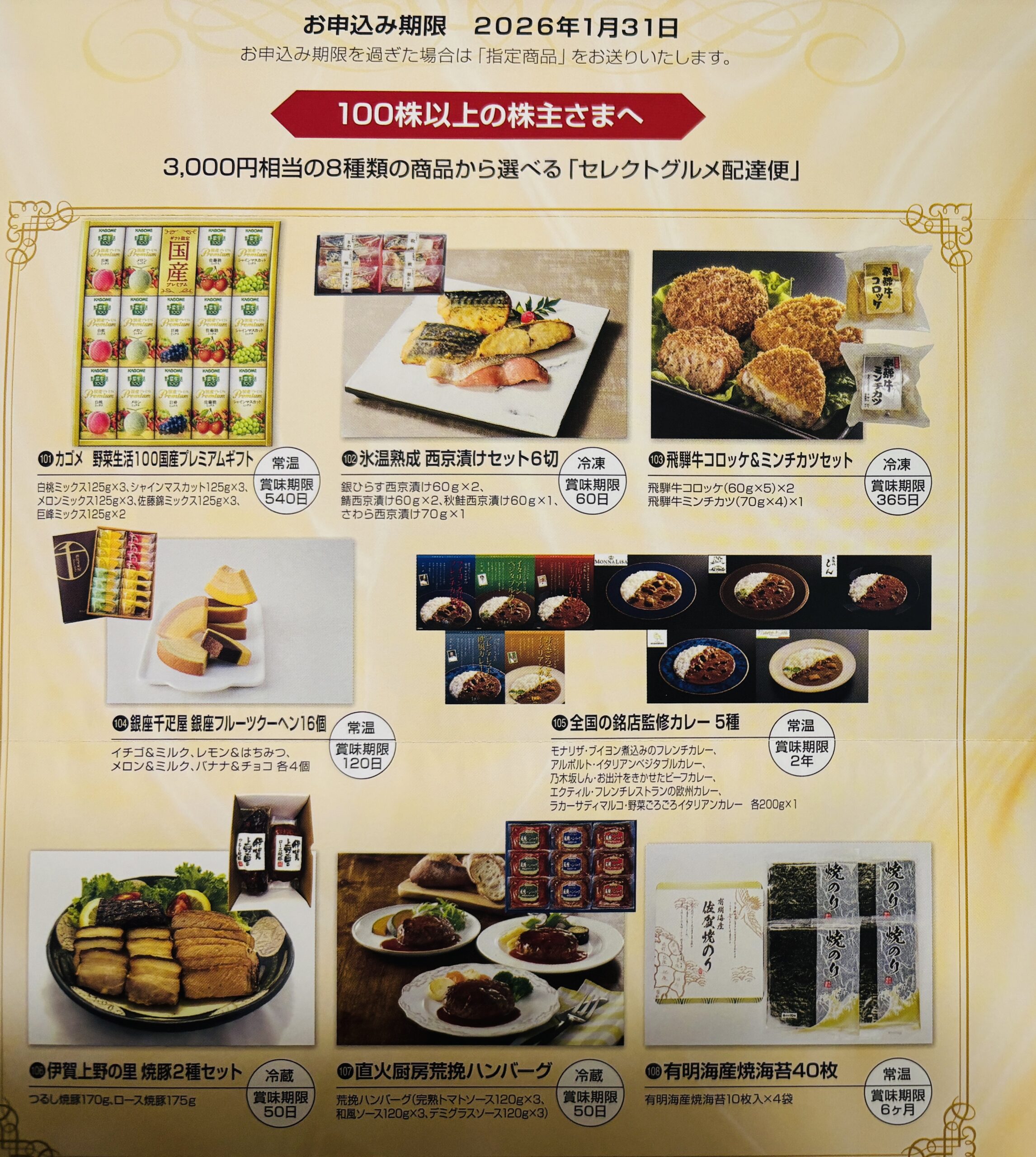 優待案内到着 カネ美食品