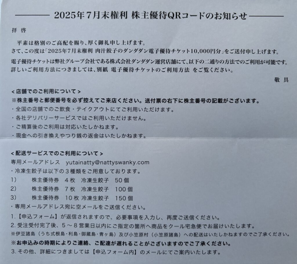 7月権利分のNATTY SWANKYの優待案内が届きました(11/4到着)