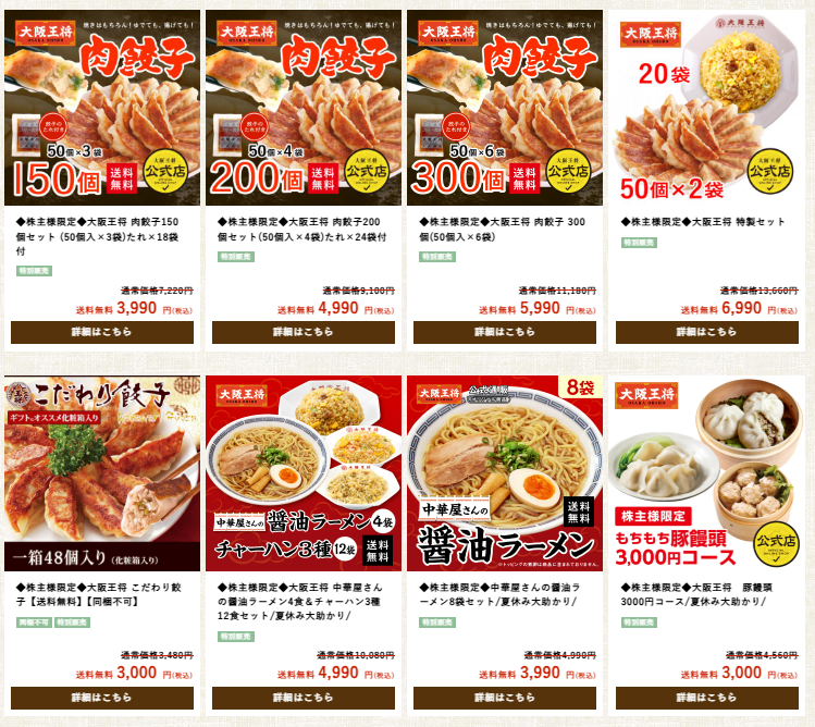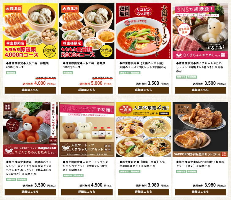 株主用に、送料無料の限定価格 特設会場が用意されています。