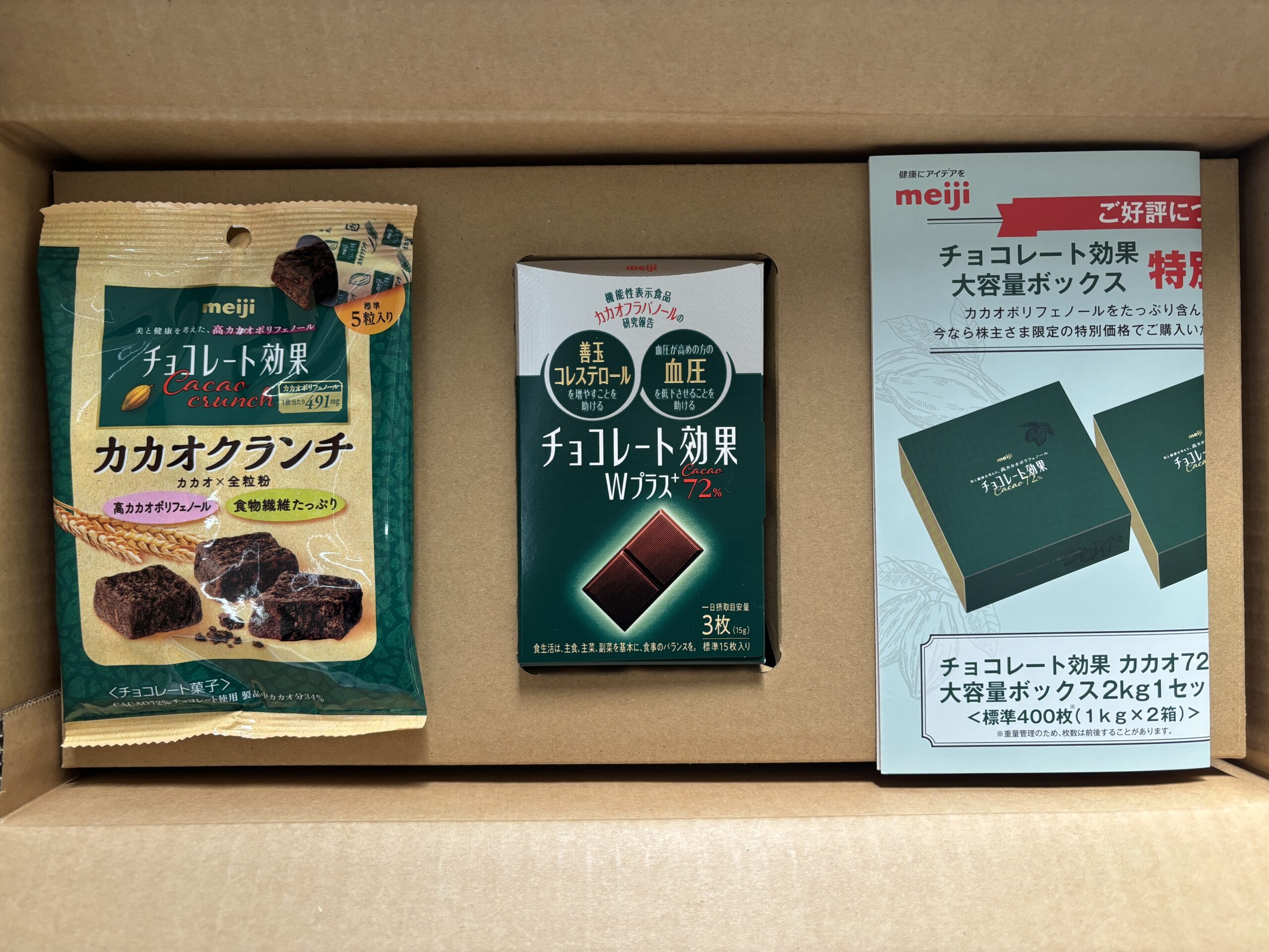 明治の優待に同封されていた、チョコレート効果の大容量ボックスを注文しました。