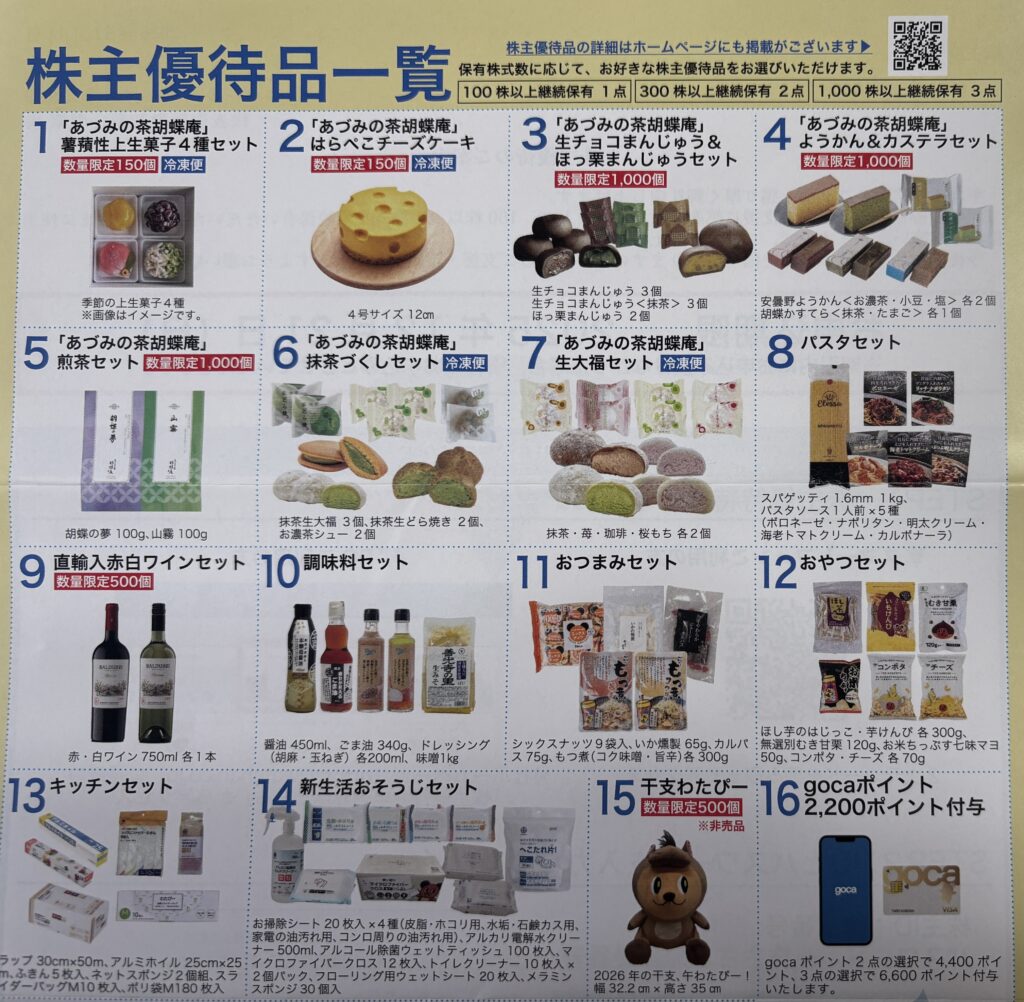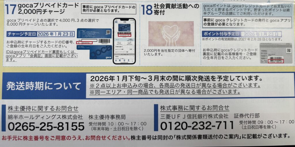 優待 9月権利 半年以上保有が必要 2000円相当の信州特産品または「goca」チャージ
