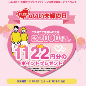 ノジマで、いい夫婦の日キャンペーンが開催中です。