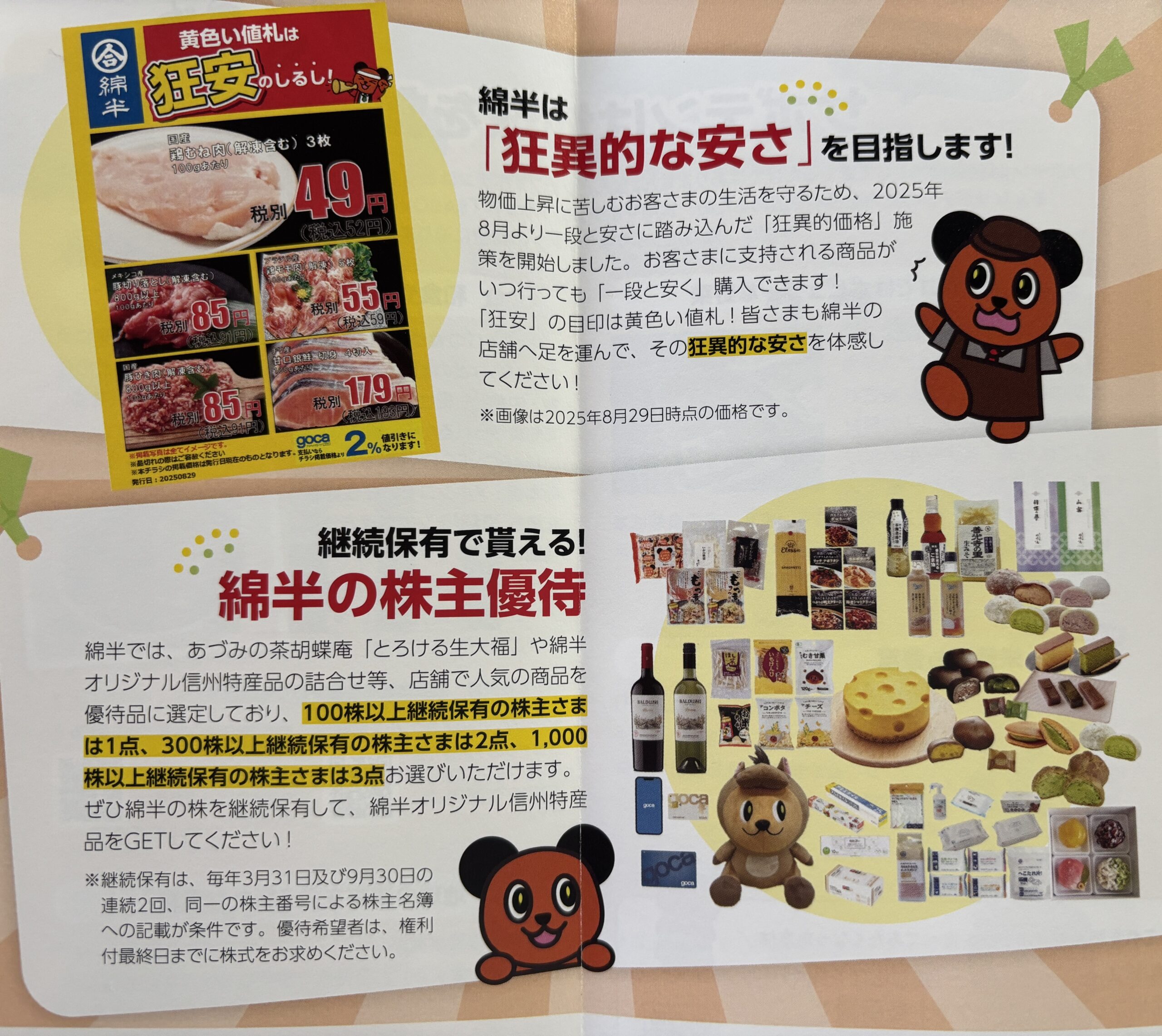 9月権利 綿半ホールディングスの優待案内が届きました。