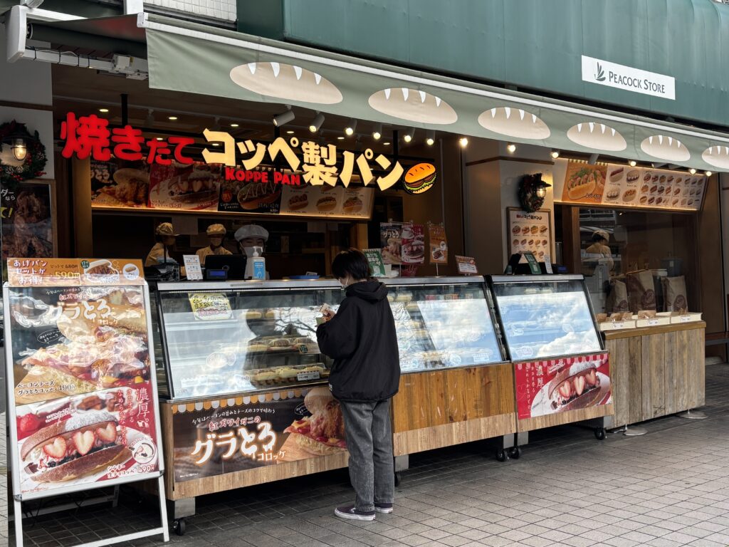 ショーケースの中のコッペパンを撮影したいのですが、どうしても自分が写りこむので、遠くから1枚だけ。