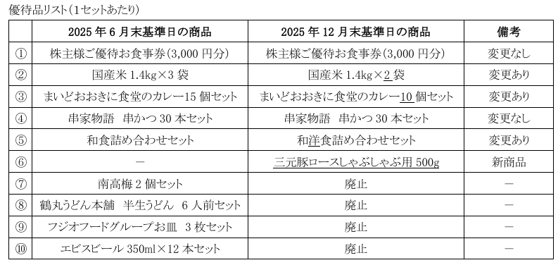 フジオフードの優待でエビスビールが無くなったのは本当に残念です。