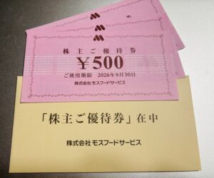 9月権利 モスフードサービスの優待券が届いています(11/13到着)