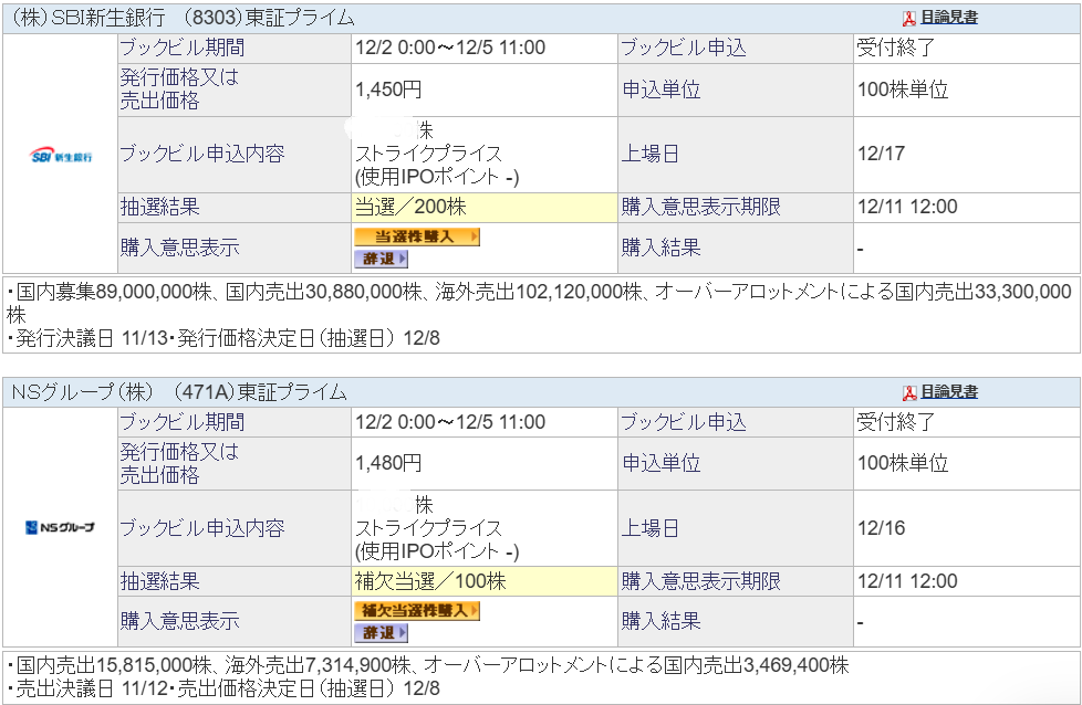 昨晩、日付が変わる頃に、SBI証券で申し込んでいた「SBI新生銀行」の抽選結果が出ましたね。