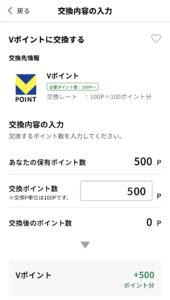 私は「Vポイント」に交換してみました。交換途中で、1回「残高不足」のようなエラー画面が出ましたが、
