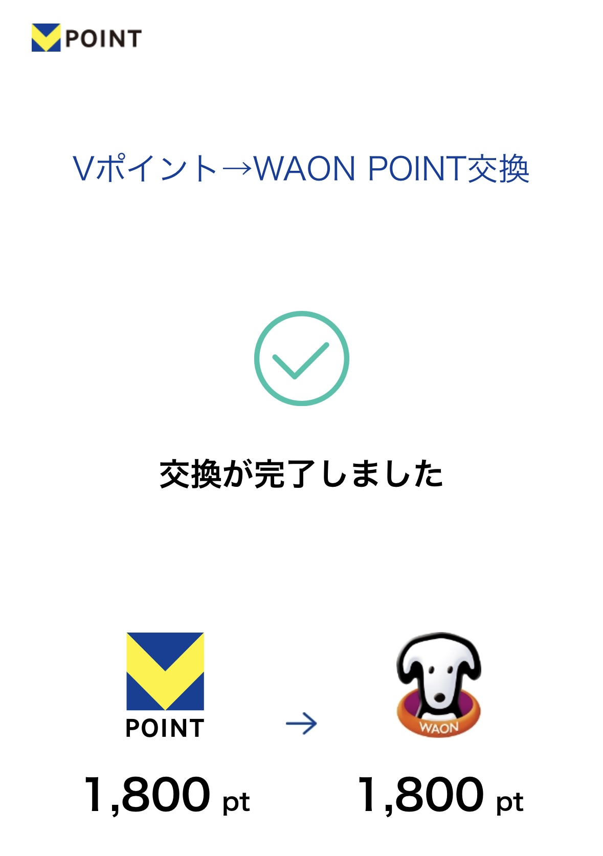 ちょこちょこ貯まっている分もまとめて、VポイントをWAON POINTへ交換しました。
