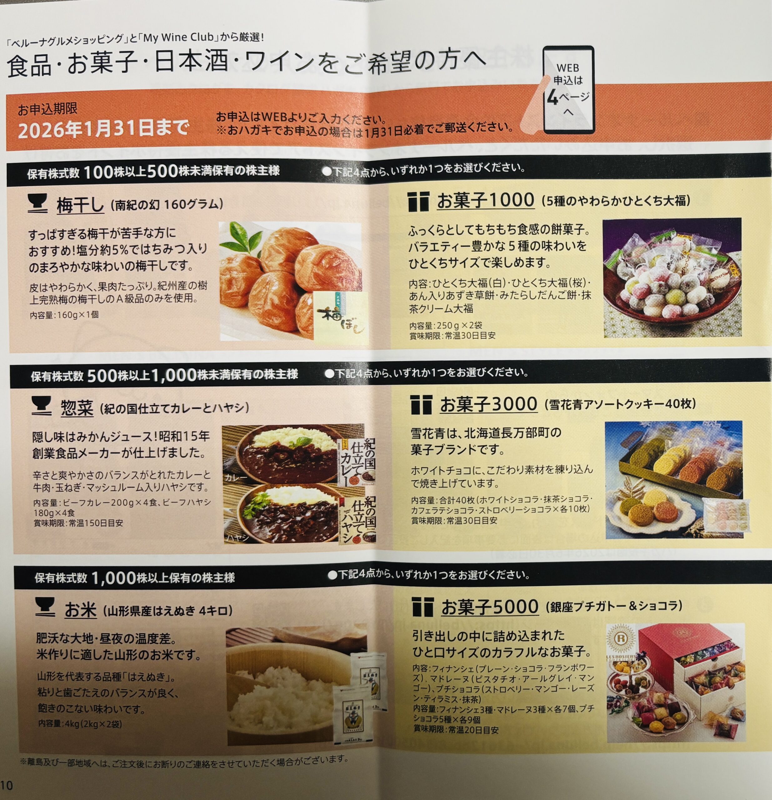 食品・お菓子・日本酒・ワインを希望する場合は、2026年1月31までの申し込みとなります。