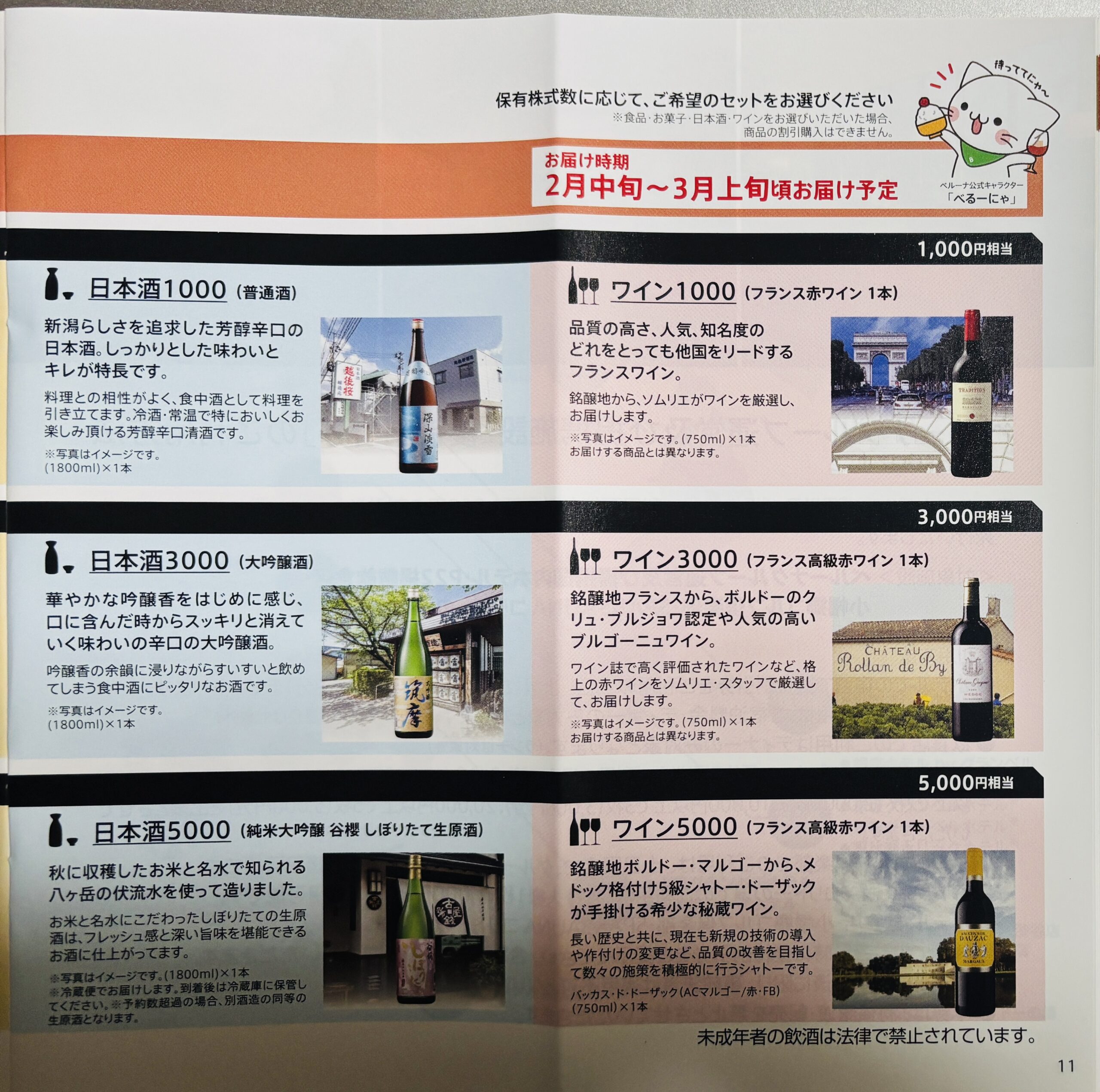 (3)3,000円相当の自社取扱の①食品②お菓子③ワイン④日本酒のいずれかから選択