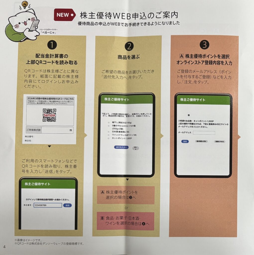 前回までは、ペラペラの薄いハガキで優待内容を選択して、ポスト投函していましたが、