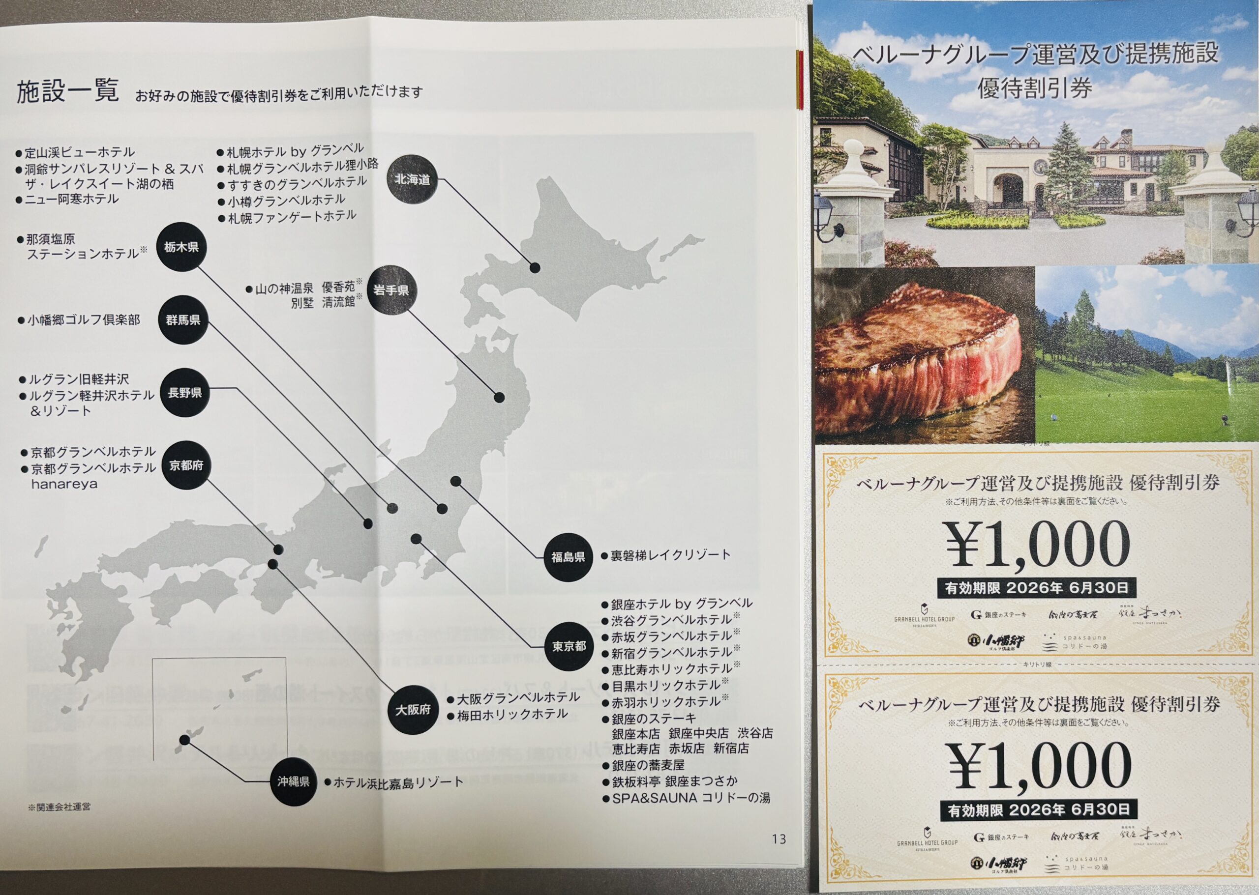 ベルーナグループ運営及び提携施設で使える、優待割引券も同封されています。
