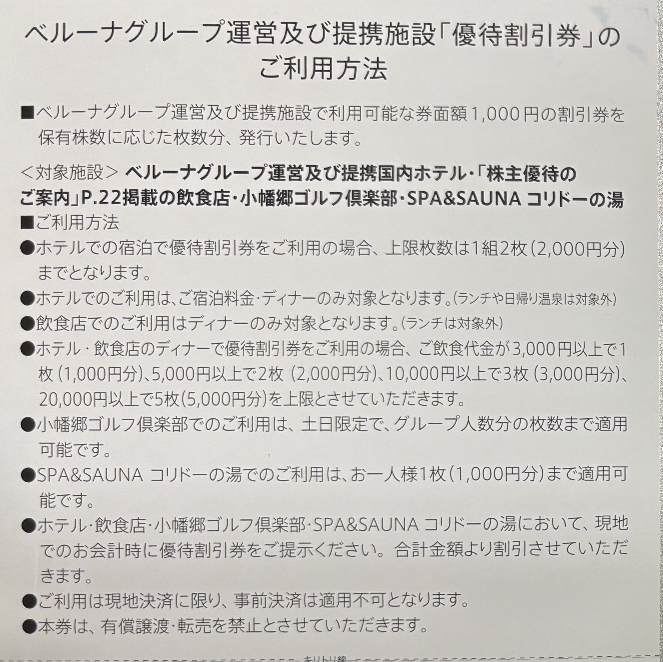優待案内 ベルーナ